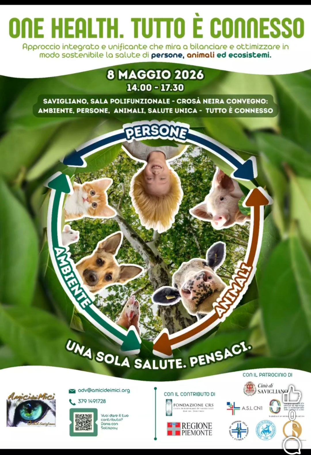 Eventi AmicideiMiciODV 06/03/2026 ONE HELTH TUTTO È CONNESSO SAVIGLIANO 8 MAGGIO 2026 SALA CROSA NEIRA CONGRESSO : Ambiente ,Persone,Animali,Salute Umica tutto è connesso.